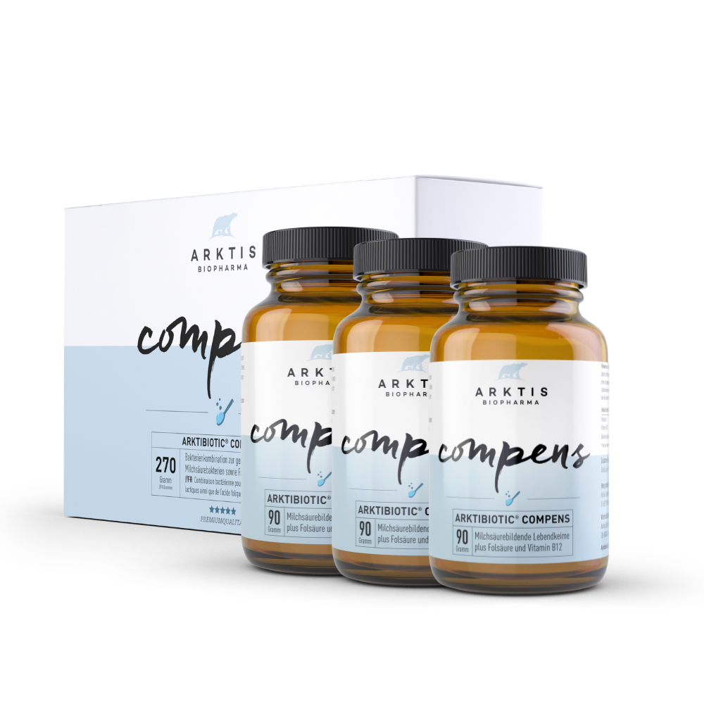 ARKTIBIOTIC Compens Nahrungsergänzungsmittel mit Milchsäurebakterien, Folsäure und Vitamin B12. Ab CHF 50.00