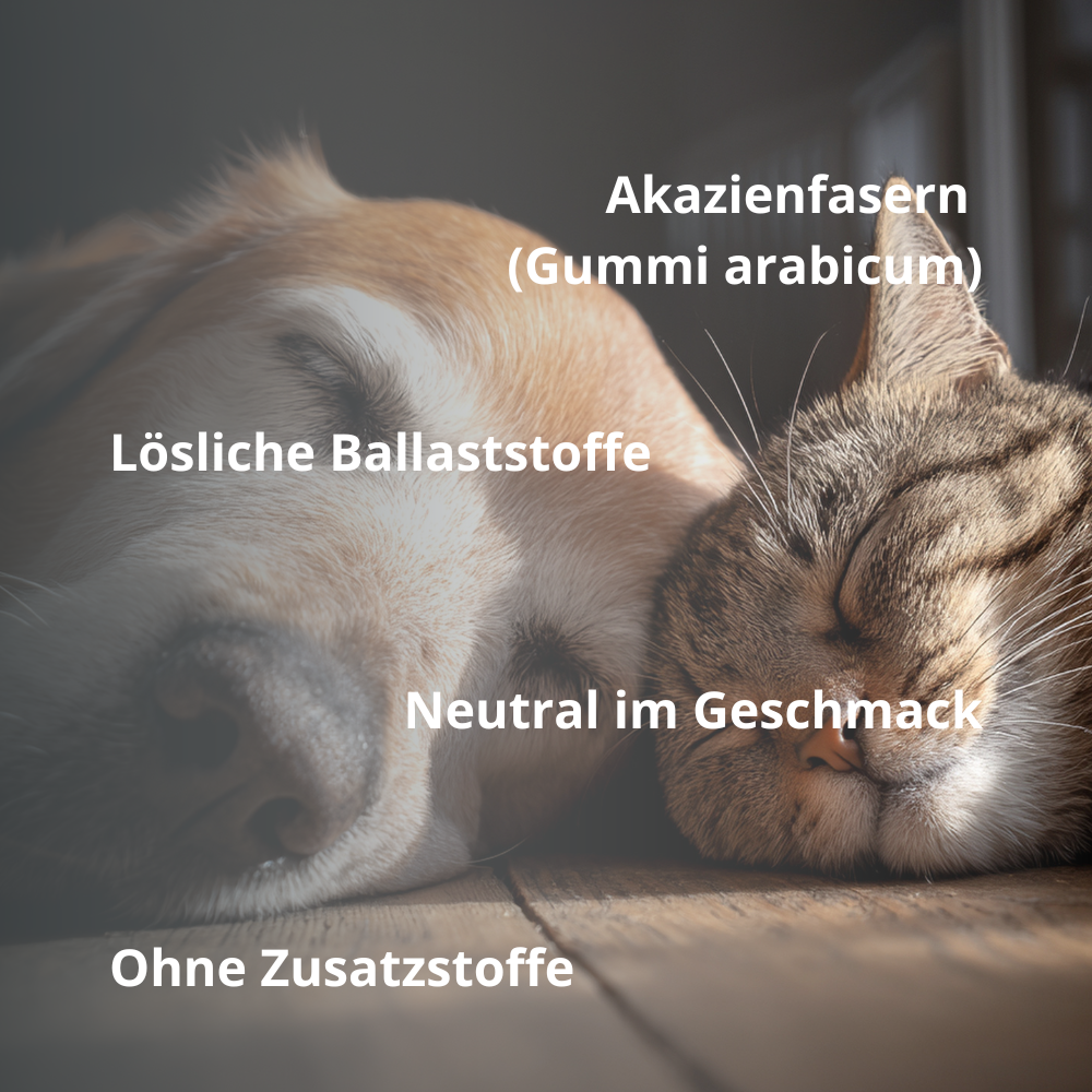 Acacia fibers are tasteless, do not cause flatulence and do not swell up in the gastrointestinal tract. They are very well tolerated and are therefore also suitable for sensitive animals.