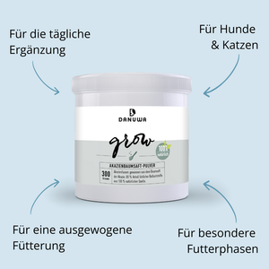 Acacia fibers serve as a natural food source for the beneficial intestinal bacteria and thus gently support the balance of the intestinal flora. This makes Grow a valuable addition to daily feeding - especially in combination with probiotic preparations such as DANUWA Probiovet.
