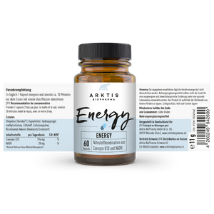 Ubiquinone (Kaneka), enveloppe de la capsule : hydroxypropylméthylcellulose, agent de remplissage : poudre de cellulose, nicotinamide-adénine-dinucléotide (réduite)