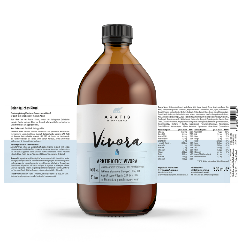 Arktibiotic® Vivora ist ein flüssiges Mikronährstoffkonzentrat mit ausgewählten Vitaminen und Mineralstoffen.