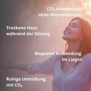 Du liegst bequem in einer Hülle, während CO₂-Gas den Körper umgibt.