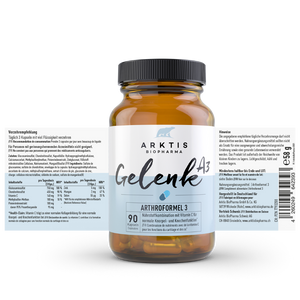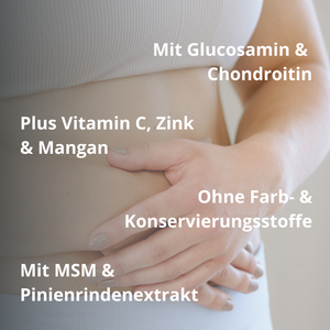 Gelenk A3 enthält eine abgestimmte Kombination aus Glucosaminsulfat, Chondroitinsulfat und Mikronährstoffen, die zur Erhaltung normaler Knochen und Bindegewebe beitragen.